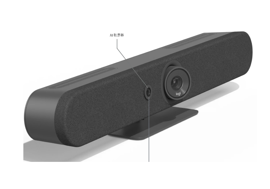- 內置組件: 6 個波束成形麥克風,PTZ 攝像頭,3 個揚聲器,AI 取景器,線纜管理和固定系統,桌面支架,羅技 CollabOS 平臺