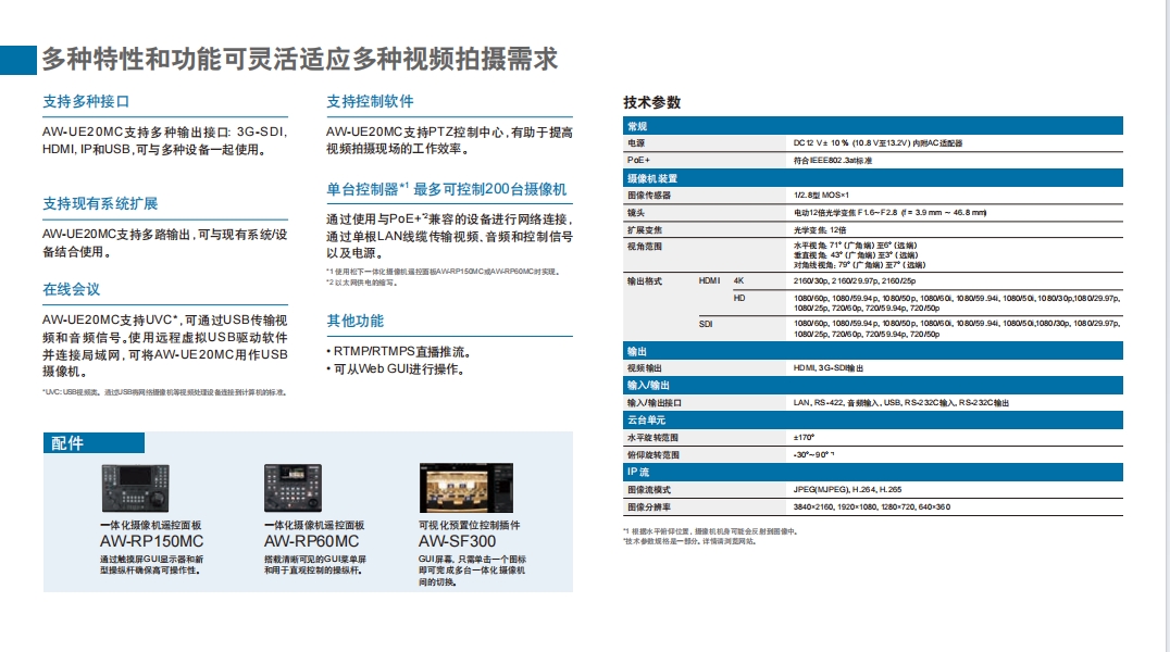 Panasonic松下AW-UE20WMC/KMC攝像機