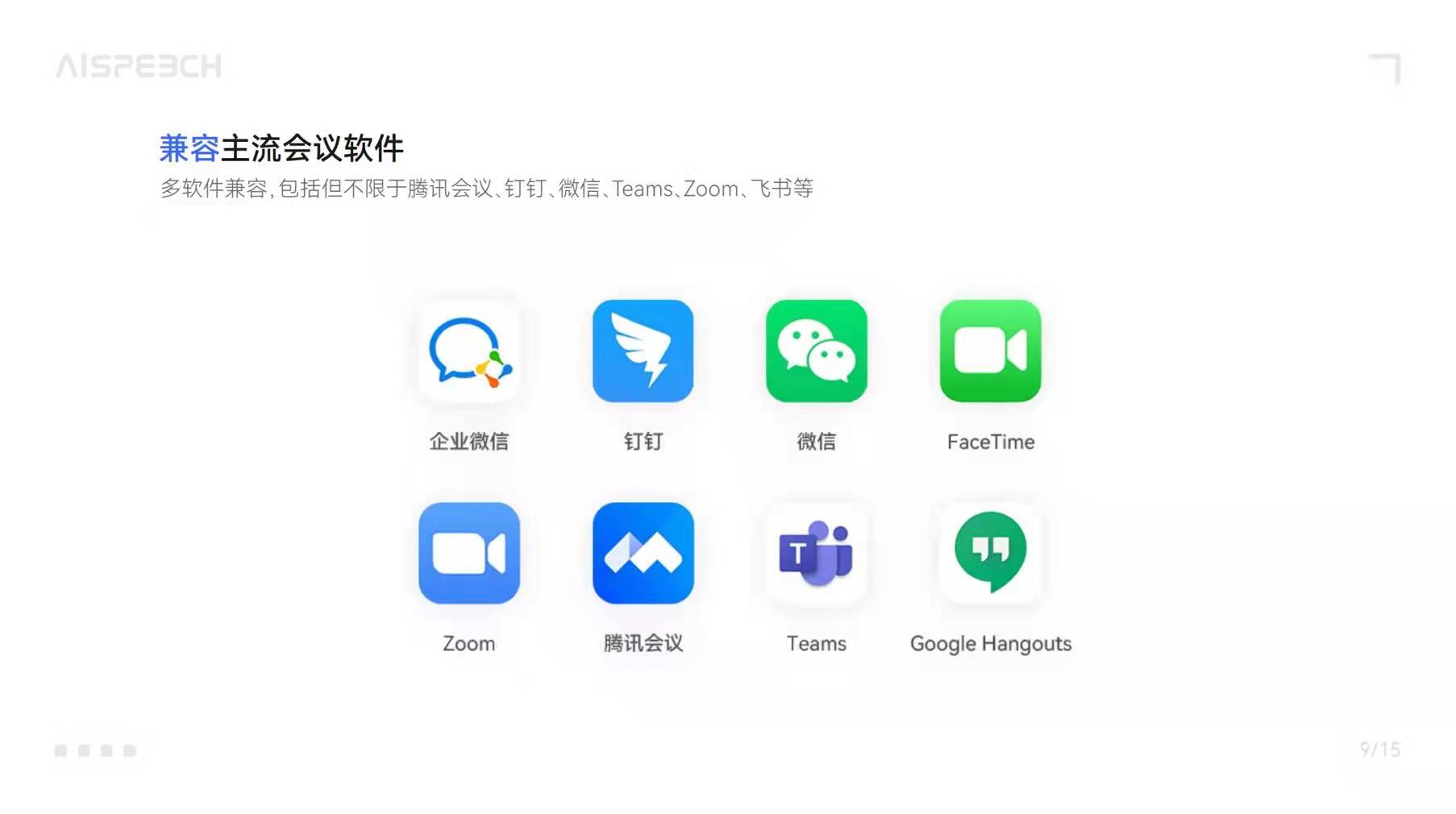 3 米有效拾音距離,不需要貼近設備 輕松 360°全方位拾音,哪里說話,哪里拾音 清晰 外放聲音大,人聲清晰,暢談會議內容 高效 多軟件兼容,包括但不限于騰訊會議、釘釘、微信、Teams、Zoom、飛書