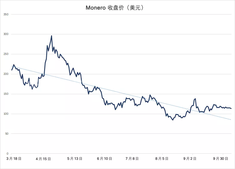 值得注意的是,在同一時期,許多常見加密貨幣的價值都出現(xiàn)下滑。其中一個例子是 Monero,這是惡意加密貨幣挖礦活動中常用的一種虛擬貨幣。