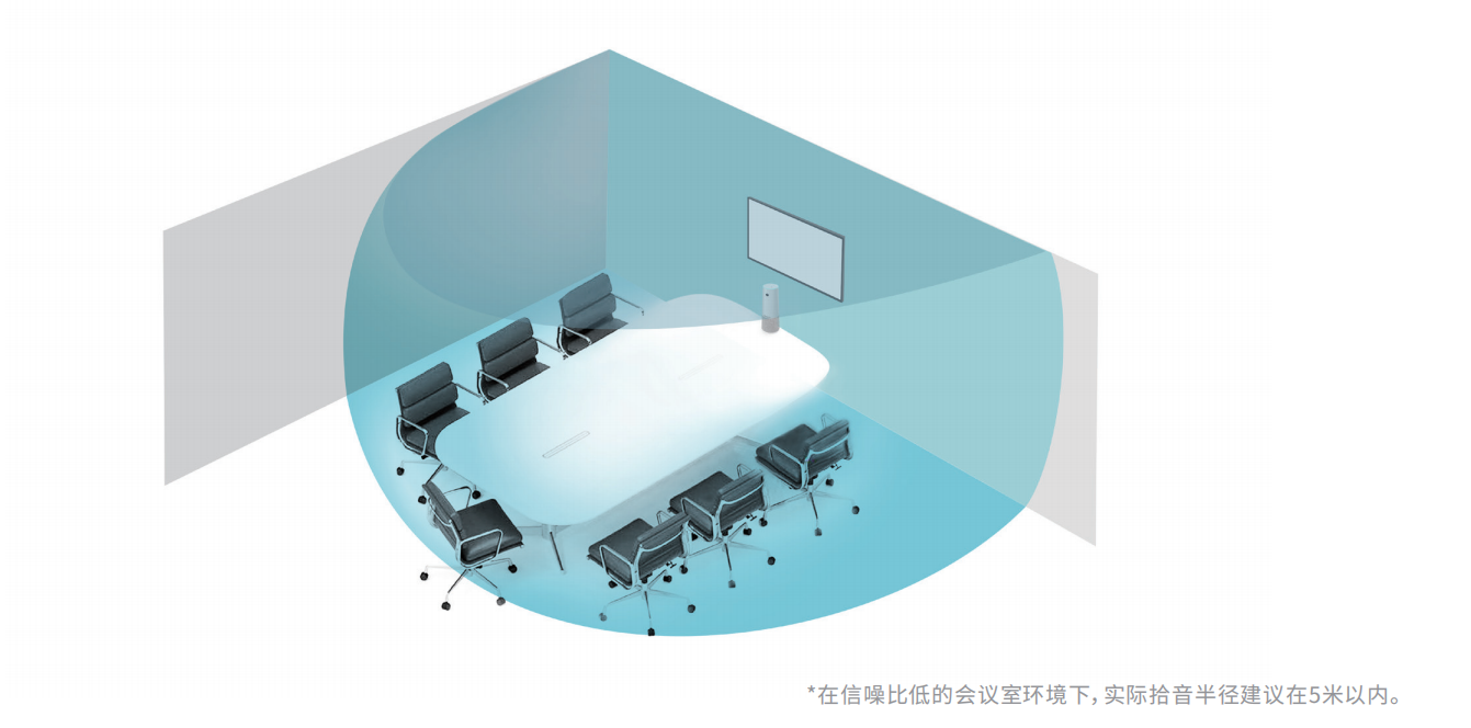*在信噪比低的會議室環(huán)境下,實際拾音半徑建議在5米以內(nèi)。