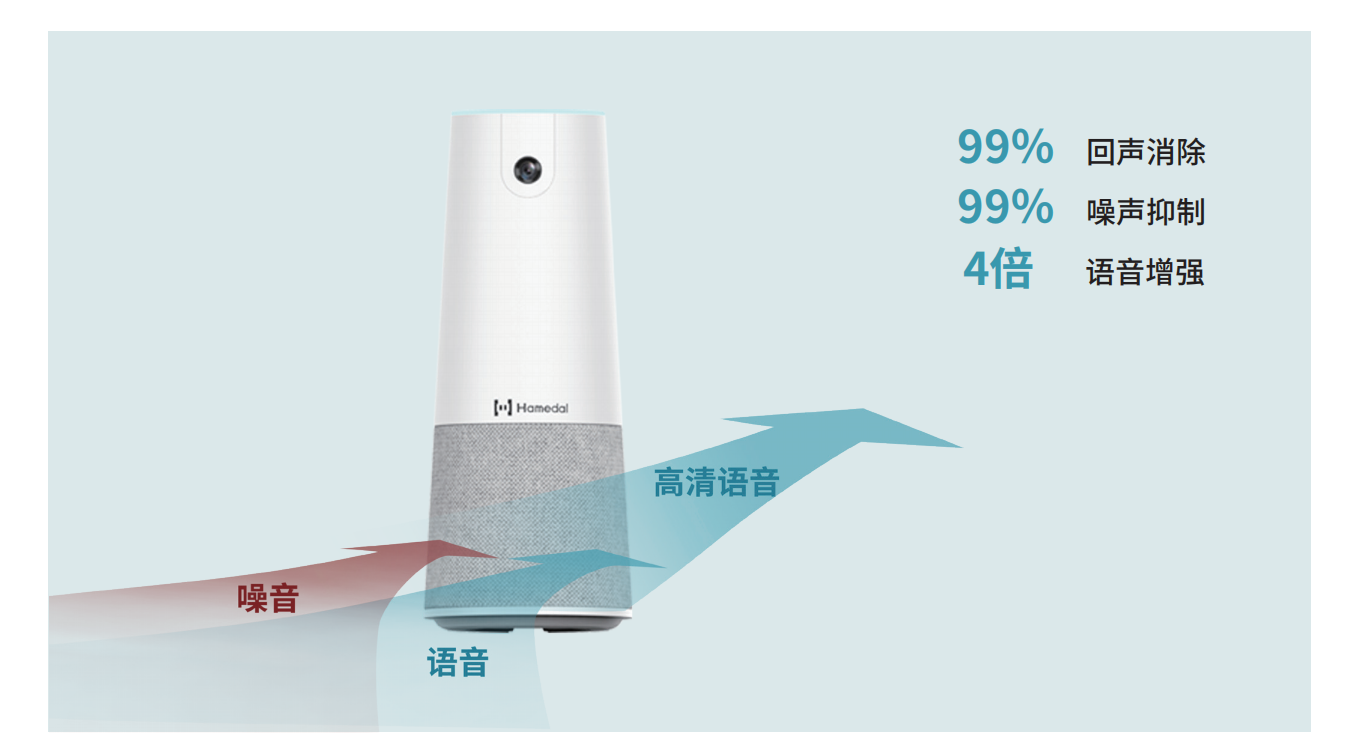 Hamedal?C20搭載蛙聲科技第三代Pure?Vioce語音處理技術(shù),基于上千小時不同會議數(shù)據(jù)學(xué)習(xí)的AI模型,能夠有效抑制各種會議室噪音,如鼠標(biāo)、鍵盤敲擊聲、電腦及空調(diào)運轉(zhuǎn)聲等。其強大的算法能力可在最大程度消減室內(nèi)噪音的同時,提取出清澈干凈的語音原聲,有效避免與會人員被雜音干擾,大幅提升會議專注度。| ? | |